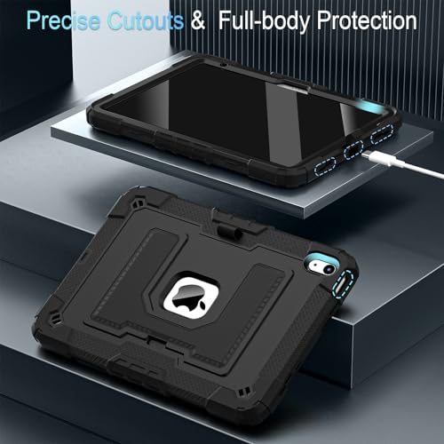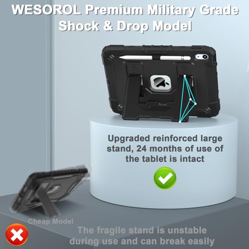 【Protección contra caídas de grado militar】La funda WESOROL para iPad de 10ª generación está hecha de policarbonato duro a prueba de golpes y silicona suave (muy agradable al tacto), esquinas gruesas de grado mejorado y diseño a prueba de golpes que mantiene tu funda para iPad de 10ª generación mejor protegida para evitar golpes diarios, rasguños, derrota el 99.99% de caídas accidentales, irrompible