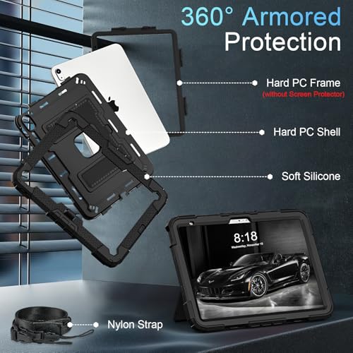 Especificaciones: Funda para iPad de 11 pulgadas (A16) de 11ª/10ª generación de 10.9 pulgadas, compatible con niños, con correa para el hombro, funda resistente a prueba de golpes para i Pad de 11ª/10ª
