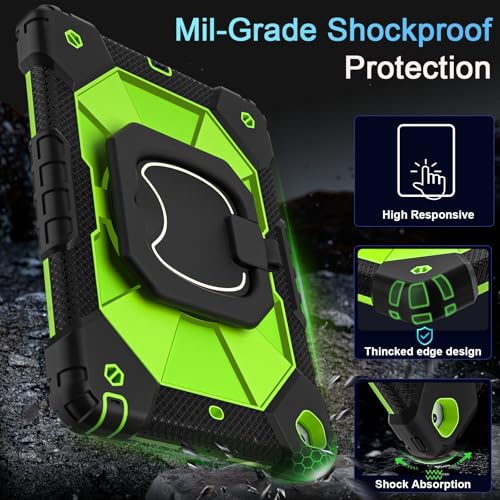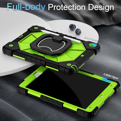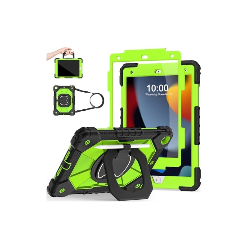 Especificaciones: Funda para iPad de 9ª generación, funda para iPad de 9ª, 8ª y 7ª generación, iPad de 10.2 pulgadas, con protector de pantalla, soporte para bolígrafo, soporte giratorio de 360°, negro, amarillo
