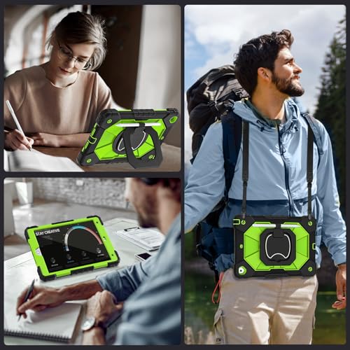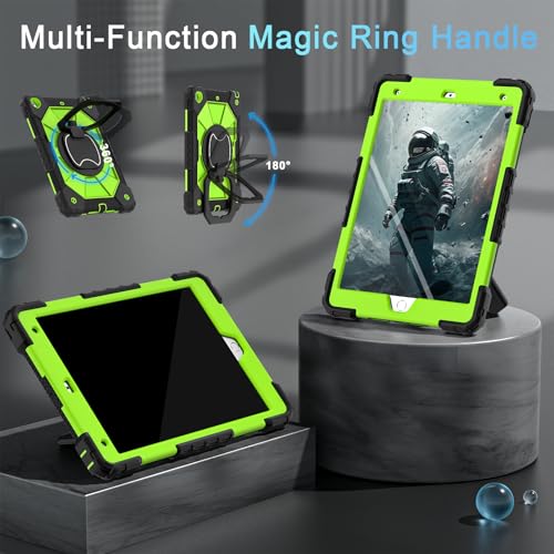 Soporte giratorio de 360°: la funda para iPad de 9ª generación con soporte giratorio de 360° con correa de mano está diseñada para la funda de iPad 10.2, proporcionando diferentes ángulos para satisfacer tus necesidades, que será conveniente para ver, escribir y dibujar, probar en exteriores