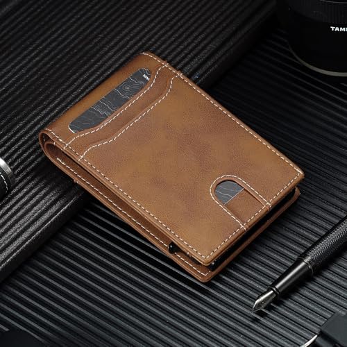 furid Cartera de tarjeta delgada para hombre: billetera desplegable con bolsillo frontal minimalista Rfid inteligente con ventana de identificación, regalos para esposo padre en aniversario de
