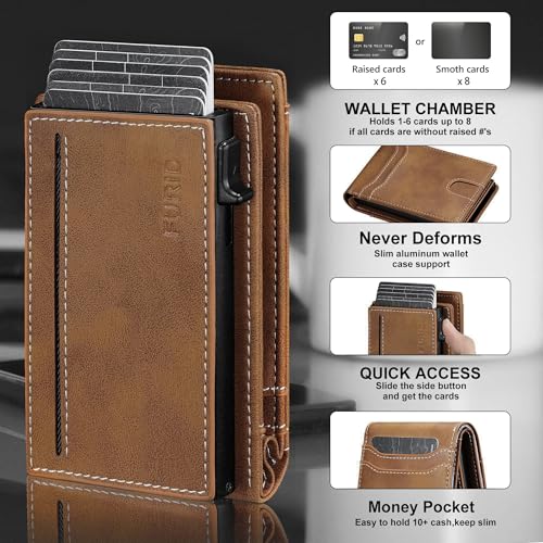 Especificaciones: furid Cartera de tarjeta delgada para hombre: billetera desplegable con bolsillo frontal minimalista Rfid inteligente con ventana de identificación, regalos para esposo padre en aniversario de