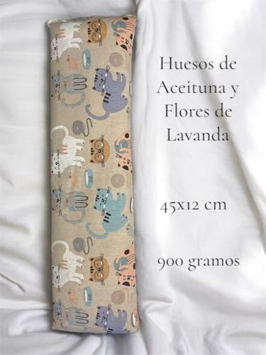 Especificaciones: GIFRATELLI Saco Térmico de Semillas de Aceituna y Flores de Lavanda 100% Natural 45×12 cm Frío y Calor Desinflamatorio y Calmante Para Microondas y Congelador (Otoño claro)