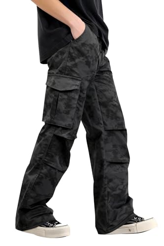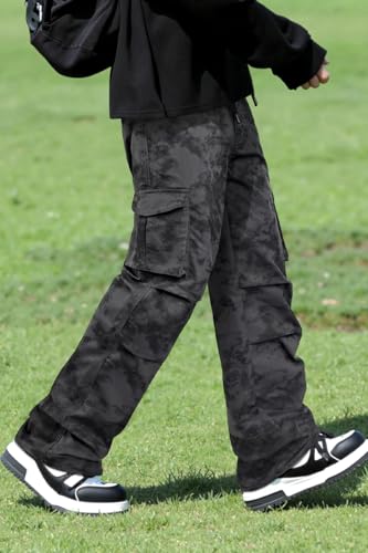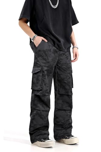 GINGTTO – Pantalones cargo holgados para hombre, camuflaje, pierna ancha, estilo de moda Y2K, ajuste suelto, ropa urbana con cordón elástico
