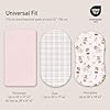 Talla única (33 x 17 x 4 pulgadas): diseñadas para uso universal, nuestras sábanas de moisés se adaptan a la mayoría de moisés, tumbonas, cunas y compañeros de cama. Se adaptan a colchones estándar, ovalados, redondos, rectangulares y en forma de reloj de arena. La banda elástica proporciona un ajuste cómodo y seguro mientras hace que los cambios de sábanas sean rápidos y fáciles