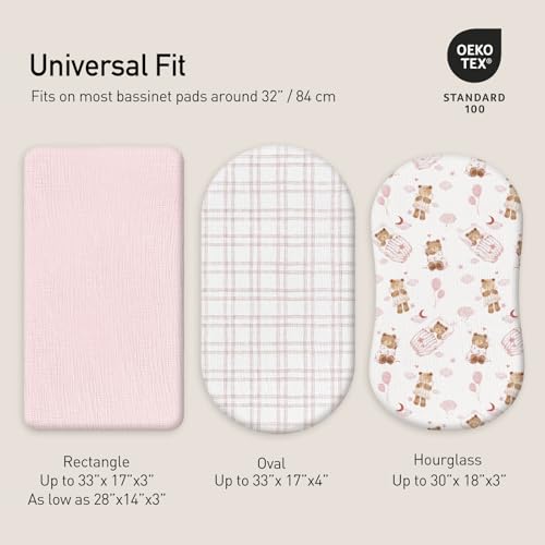 Gllquen Baby Paquete de 3 sábanas de muselina para moisés, transpirables, elásticas, acogedoras, de algodón, para bebé, niño y niña, apta para sábanas ovaladas de reloj de arena, rectangular, 33 x 17