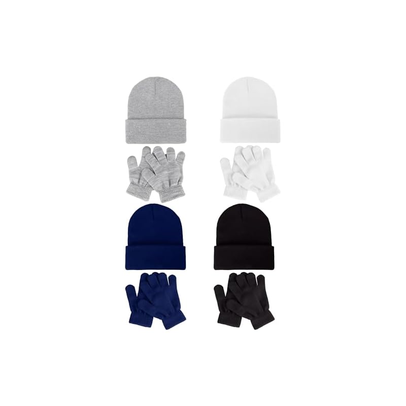 Especificaciones: Glooarm 8 Pack Kids Beanie Hats and Gloves Set Kid’s Knitted Beanies Hat Winter Gloves for Boys Girls