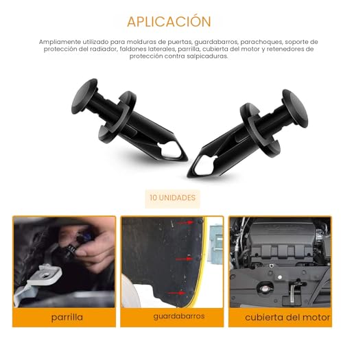Kit de tornillos de protección contra salpicaduras del motor, clips de parachoques para guardabarros, remaches de reemplazo directo y ajuste perfecto. Tipo de ajuste: universal
