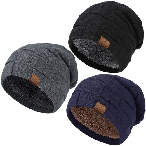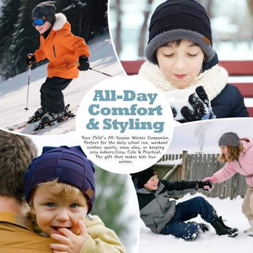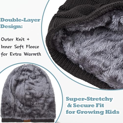 Gorros de invierno para niños, 3 unidades, cálido gorro de calavera acogedor con forro polar para niños y niñas de 4 a 15 años, gorro de punto resistente al viento