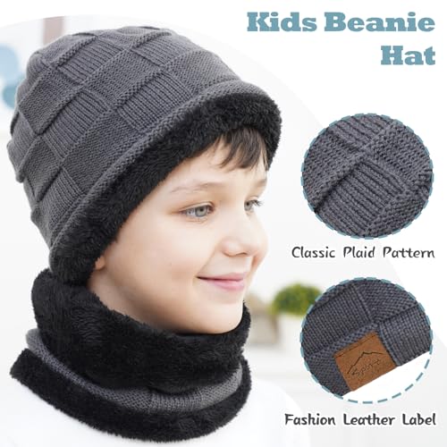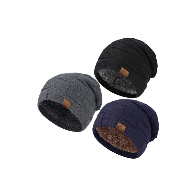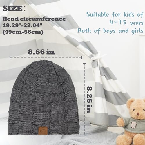 Especificaciones: Gorros de invierno para niños, 3 unidades, cálido gorro de calavera acogedor con forro polar para niños y niñas de 4 a 15 años, gorro de punto resistente al viento