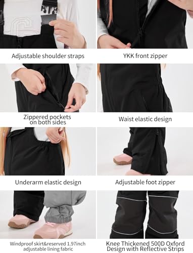 Especificaciones: GSOU SNOW Baberos de Nieve para Niños Niñas y Niños, Pantalones de Nieve, Peto de Esquí Overall, Impermeable, Resistente al Viento, Cálido para Niños Pequeños, Niños Grandes y Adolescentes