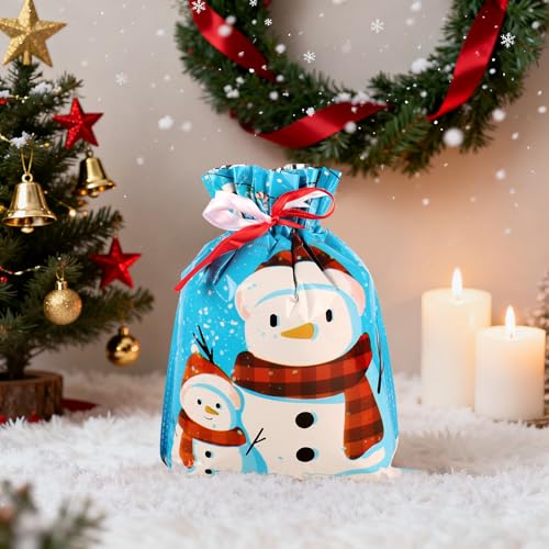 Amplia aplicación: las bolsas multifuncionales de Navidad son perfectas para fiestas de Navidad y un paquete muy valioso para envolver regalos de Navidad, se pueden utilizar para almacenar pequeños regalos, dulces, muñecas, galletas, etc. Perfecto para envolver regalos de Navidad, decoración de Navidad, regalo de vacaciones, bodas, cumpleaños, árboles de Navidad, etc. Año nuevo, etc., para mejorar el ambiente festivo.