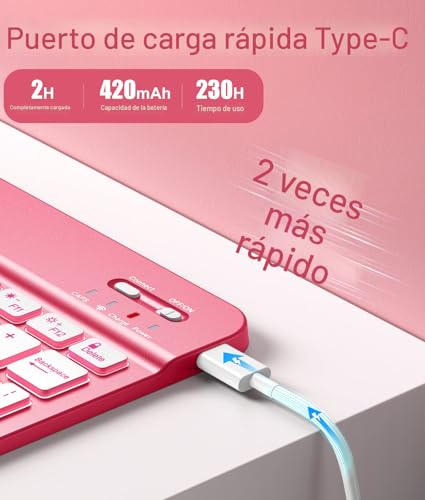 Batería recargable y de larga duración: Nuestra funda para iPad con teclado batería de gran capacidad incorporada de 420 mAh, más ahorro de energía y menor consumo, garantiza que puedas usar al menos 230 horas. Se puede cargar completamente en 2 horas con el cable de carga tipo C, no es necesario reemplazar la batería