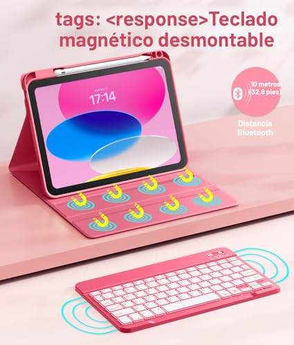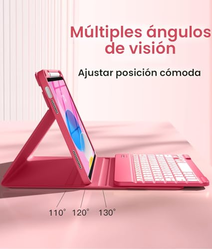 Especificaciones: Hamile Funda para iPad de 11ª y 10ª generación con teclado, 7 colores retroiluminados, inalámbrico, desmontable, con soporte para lápiz, para iPad de 11 pulgadas, A16 2025, 10ª generación, 10.9