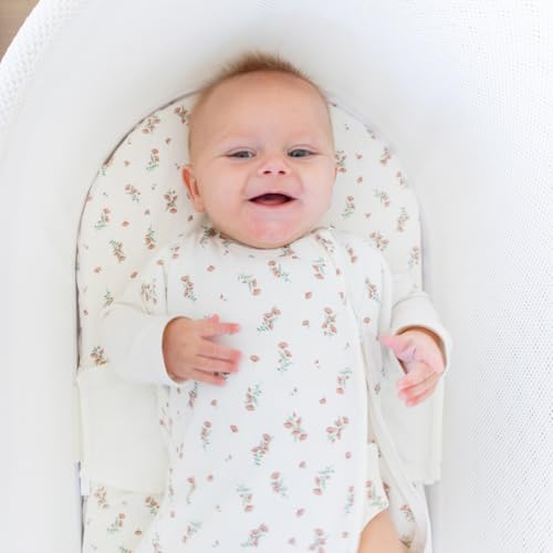 Happiest Baby SNOO – Sábana bajera ajustable para cuna, 100% algodón orgánico, para colchón de cuna SNOO (flores silvestres marfil)