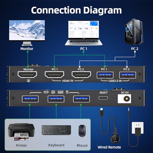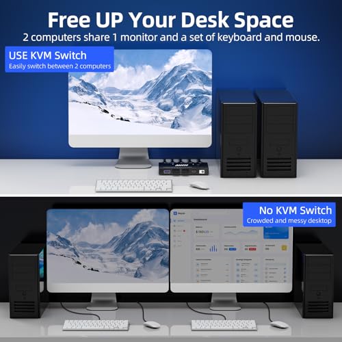 【Wide Compatibility and Easy to Use】This KVM switch is driver-free, plug and play.It is required that each connected computer have HDMI port. Not recommended for devices connected to VGA and DVI ports