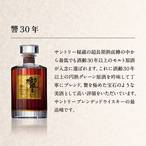 Hibiki significa reonance en japonés y los usos más de 30 tipos de whisky de la Yamazaki, Hakushu y Chita destilerías todos los cuales son al menos 30 años de edad p>