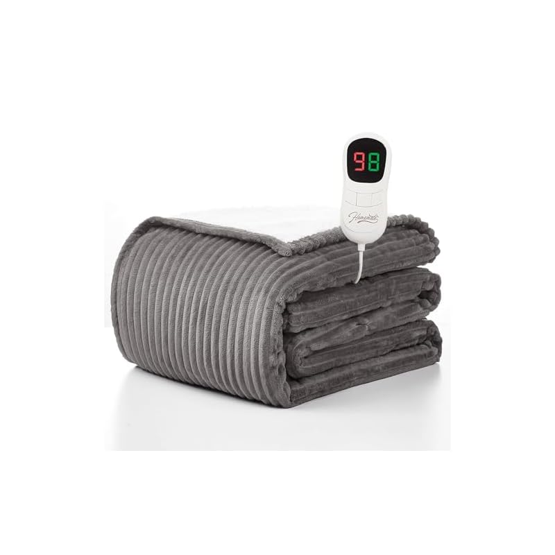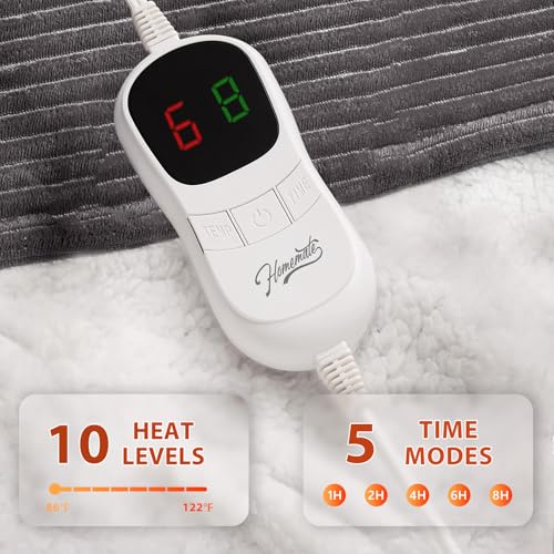 Homemate Manta térmica eléctrica, manta térmica de 50 x 60 pulgadas, manta térmica de 1/2/4/6/8 horas de apagado automático, 10 niveles de calor, protección contra sobrecalentamiento, calentador de