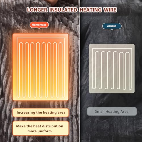 Área de calefacción más grande: el cable calefactor utilizado en la manta eléctrica Homemate es más largo, por lo que el área de calefacción es más grande y la distribución del calor es más uniforme.