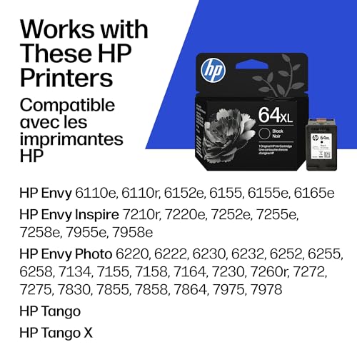 HP Cartucho de tinta negro de alto rendimiento 64XL | Funciona con Envy Inspire 7250e, 7950e; Envy Photo 6200, 7100, 7200, 7800, 7900; Serie Tango | Elegible para Instant Ink | N9J92AN