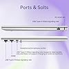 Especificaciones técnicas: 1 velocidad de señalización USB tipo C de 5 Gbps (solo soporta transferencia de datos y no soporta carga o monitores externos), 2 velocidades de señalización USB tipo A de 5 Gbps, 1 pin inteligente de CA, 1 HDMI 1.4b, 1 combo de auriculares/micrófono, teclado retroiluminado, lector de huellas dactilares, Wi-Fi 6 y Bluetooth