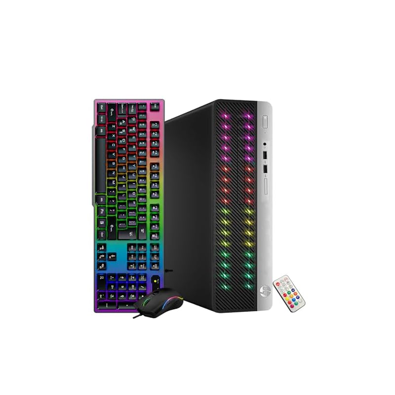 Descripción general técnica Descripción general del PC de escritorio HP ProDesk 400 G5 con procesador de panel frontal RGB controlado a distancia Descripción general del procesador Intel Core i3-8100 8ª generación caché de 6M, RAM de 3.60 GHz Descripción general La computadora de escritorio HP viene con 16 GB de RAM DDR4, que es más rápido. Gráficos del procesador El HP Desktop tiene gráficos Intel UHD 630 incorporados. Sin embargo, puede instalar una tarjeta gráfica de bajo perfil para convertirla en un PC para juegos Almacenamiento El HP Desktop utiliza una unidad de disco de estado sólido que puede contener hasta 1 TB de información. Contenido del paquete: computadora de escritorio, nuevo combo de teclado y mouse para juegos, adaptador Wi-Fi USB y adaptador Bluetooth, sistema operativo de cable de alimentación Windows 11 Pro (64 bits)