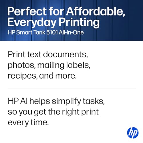 HP Smart Tank 5101 – Impresora inalámbrica todo en uno con tanque de tinta, hasta 2 años de tinta incluida (1F3Y0A)