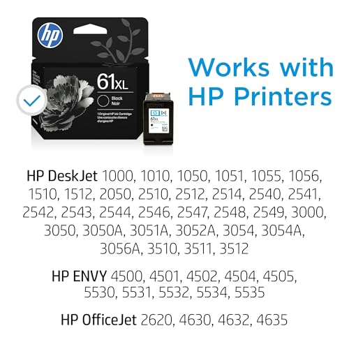 HP Tinta negra de alto rendimiento 61XL | Funciona con la serie: DeskJet 1000, 1010, 1050, 1510, 2050, 2510, 2540, 3000, 3050, 3510; ENVY 4500, 5530; OfficeJet 2620, 4630 | Elegible para Instant Tinta