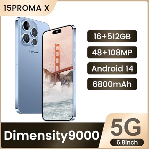 Huness 15PROMAX Smartphone Teléfono Celular Desbloqueado, Batería de 6800mAh Pantalla HD de 6.8 Teléfono Desbloqueado, 16+512GB Android 14 con Tarjeta de Memoria de 128GB, Dual SIM/5G/Bloqueo de