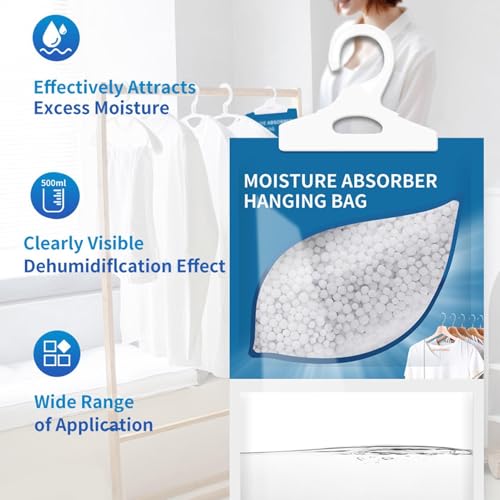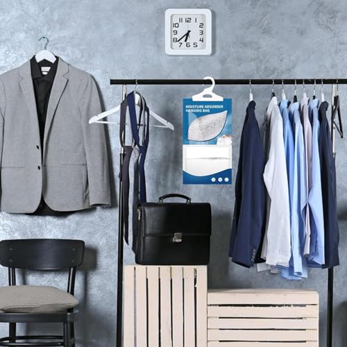 Colocación versátil: mantenga su armario, baño y cocina secos con nuestro deshumidificador de armario colgante ligero y práctico. Perfecto para cualquier habitación con espacio de almacenamiento.
