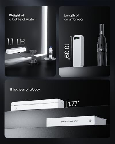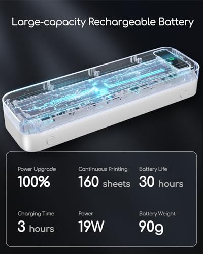Impresoras portátiles inalámbricas para viajes [Compactas y ahorran espacio]: Impresora portátil con batería recargable de alta capacidad incorporada, imprime 160 hojas de papel térmico de 8,5 » x 11 » por carga. Pesa solo 1.5 libras y es de tamaño pequeño. Esta impresora portátil sin tinta cabe fácilmente en una mochila o maletín. Ideal para imprimir sobre la marcha durante viajes de negocios, en automóvil o camión, oficina pequeña, sitio de construcción, escuela y uso doméstico. Puede imprimir documentos, contratos, facturas, recibos y tarjetas de embarque en cualquier momento y en cualquier lugar