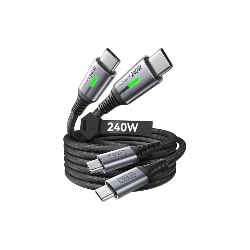 Especificaciones: INIU Cable USB C a USB C, carga rápida de 240 W [6.6 pies, paquete de 2] cable de carga tipo C, cable de carga trenzado USBC para iPhone 17 16 15 Pro Max Samsung S25 S24 Laptops MacBook iPad Air