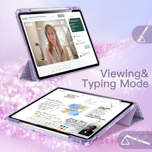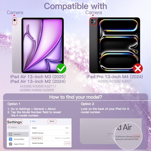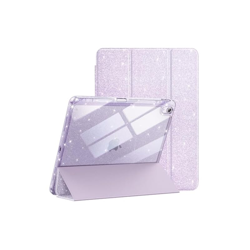 Especificaciones: JETech Funda con purpurina para iPad Air de 13 pulgadas M3/M2 (2025/2024) con soporte para lápices, bonita funda delgada brillante para niños y niñas, carcasa trasera transparente brillante (morado)