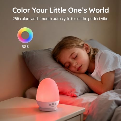 JolyWell Luz nocturna para bebé con máquina de ruido blanco, luz nocturna RGB regulable para niños, 3 temperaturas de color, atenuación continua, USB-C recargable, lámpara táctil para guardería y
