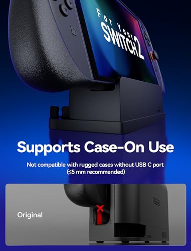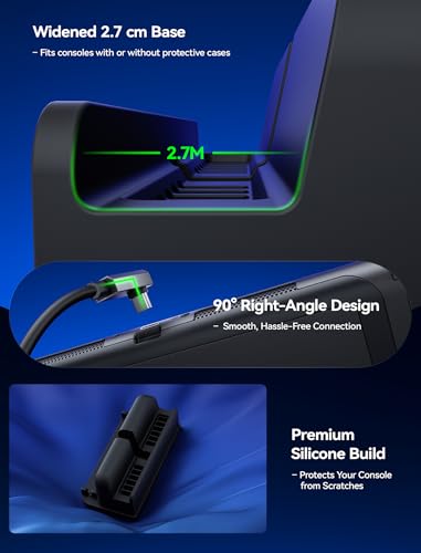 Diseño único de soporte: compatible con dispositivos de mano que tienen fundas protectoras de varios grosores (menos de 2.0 in), el soporte de refrigeración mejorado cuenta con una estructura abierta y sin ranura que evita que tu consola se frote o raye contra la base mientras se carga. Permite que el calor se disipe libremente, manteniendo tu consola fresca, segura y estable, perfecta para jugadores que prefieren cargar sin quitar la funda