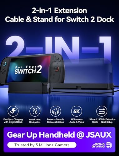 JSAUX Cable extensor con soporte de refrigeración para Switch 2, cable de extensión tipo C de 13.8 pulgadas, carga rápida de datos de 10 Gbps, función de base 1:1 restauración, refrigeración mantiene