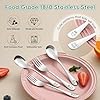 Material de grado alimenticio: estos utensilios para niños pequeños están hechos de 100% acero inoxidable 18/0 de alta calidad con pulido de espejo, asegurando que no sea tóxico y no se oxida fácilmente, protegiendo la salud y la seguridad de tus hijos, los padres pueden comprar con confianza. Los cubiertos para niños son resistentes y duraderos, aptos para lavavajillas, fáciles de limpiar, lo que te brinda más comodidad y tranquilidad.