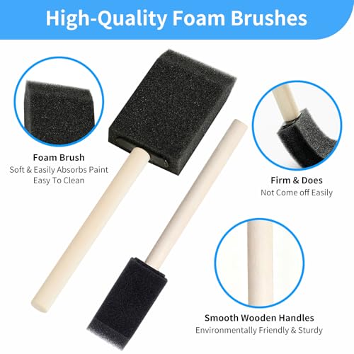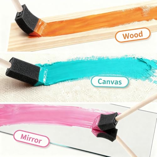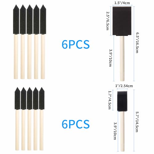 Juego de 12 pinceles de espuma para pintura: pinceles de esponja de 1 pulgada y 1.5 pulgadas con mango de madera, ligeros y duraderos para pintar, teñir, manualidades, arte de bricolaje, pintura