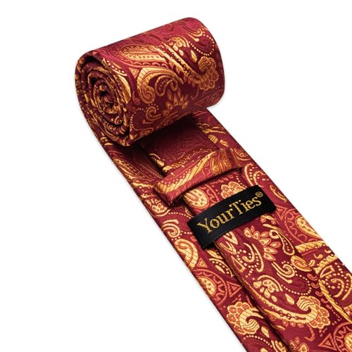 Juego de corbatas de seda con estampado paisley, corbata floral, pañuelo y gemelos, de YourTies, para negocios, bodas y fiestas