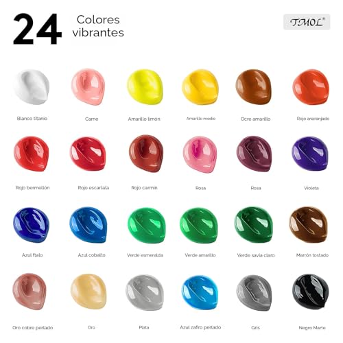 Colores vibrantes de alta calidad: nuestra pintura ofrece brillo, deslizándose suavemente y secándose rápidamente, preservando sus tonos vibrantes. Tanto si eres un aficionado como un profesional, los 24 colores de este juego alimentarán tu creatividad. Perfecto para arte en lienzo, estos colores resistentes a la decoloración garantizan que tu trabajo dure. Logra tonos consistentes y deja que tu creatividad florezca con este excepcional kit de pintura.