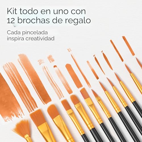 Juego de pintura todo incluido: da rienda suelta a tu creatividad desde el principiante hasta el nivel profesional con esta divertida y educativa pintura acrílica. Abre la caja y estarás listo para dibujar y pintar. Viene completo con 24 pinturas vibrantes en botellas de 2.1 fl oz, proporcionando amplios colores para tus esfuerzos artísticos. Además, hemos incluido 12 pinceles de pintura acrílica de alta calidad, para niños y adultos.