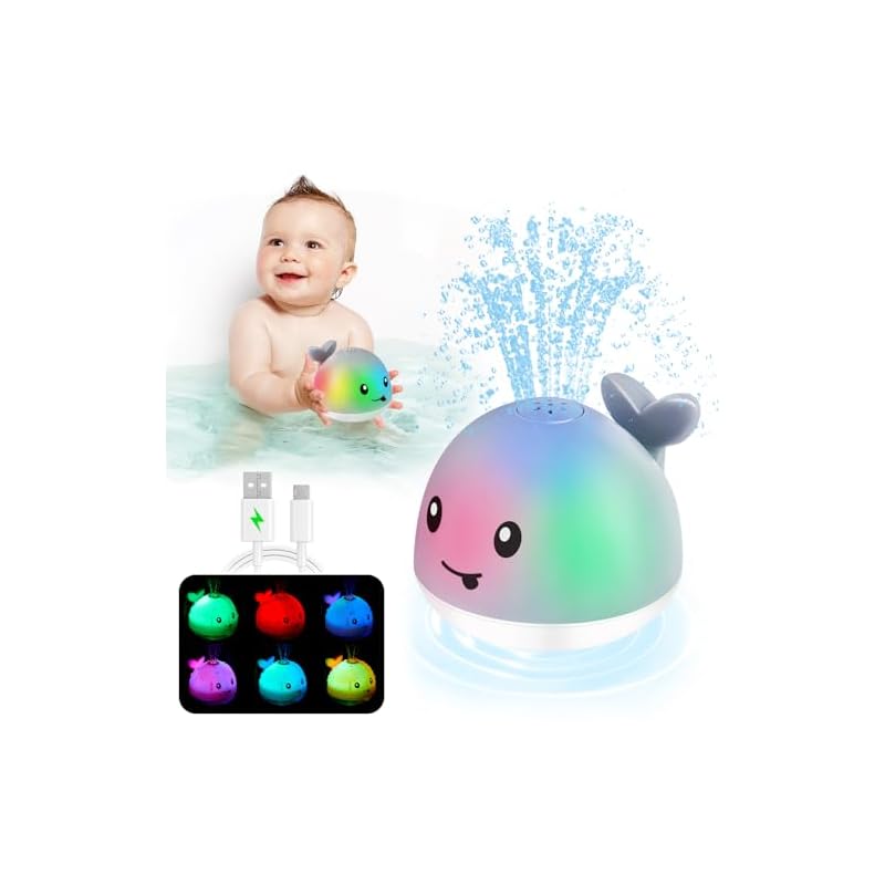 Juguetes de baño para bebés recargables mejorados: los juguetes de bebé iluminados para niños pequeños de 1 a 3 años tienen batería recargable y un largo tiempo de pulverización de agua. ¡No es necesario reemplazar las baterías nuevas! Los juguetes para bebés, las luces coloridas y el agua rociadora brindan entretenimiento sin fin para baños de bebé, tu bebé disfrutará de cada hora del baño. Juguete de aspersor de baño de agua perfecto para niños pequeños, niños, bebés, niños y niñas