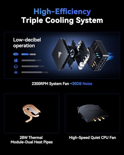 Triple pantalla 4K @60 Hz: la mini PC KAMRUI Essenx E3 Ryzen 5 3500U está alimentada por gráficos de frecuencia dinámica de hasta 1200 MHz, pantalla de alta definición 4K @60Hz, puedes obtener una claridad de imagen ultra alta y efectos visuales inmersivos. 1 puerto HDMI 2.1, 1 puerto DP 1.4 y 1 puerto tipo C, compatible con 3 monitores, por lo que puede administrar fácilmente múltiples tareas, trabajar y ayudarlo a concentrarse e inspirar mientras crea. La mini computadora cuenta con un ventilador de refrigeración integrado silencioso y potente, eliminando la necesidad de preocuparse por el ruido y la calefacción durante la multitarea.