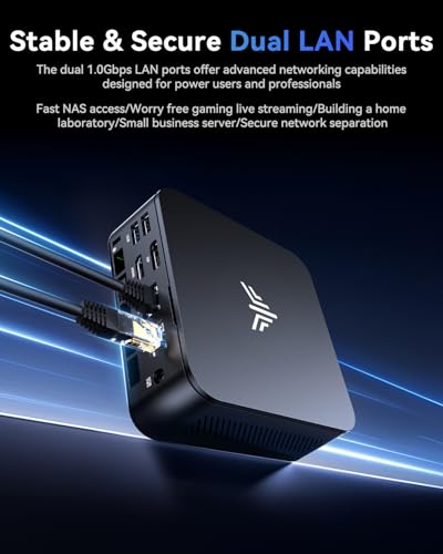 LAN Gigabit dual y preparación para servidor: con dos puertos RJ45 independientes de 1.0 Gbps, la mini PC Essenx E3 ofrece conectividad por cable estable y de alta velocidad. Es ideal para roles exigentes como trabajo de oficina, servidores de oficina, configuraciones de servidores multimedia o como una plataforma dedicada para firewalls PfSense y Unenred, eliminando cuellos de botella de la red en entornos intensivos de datos.