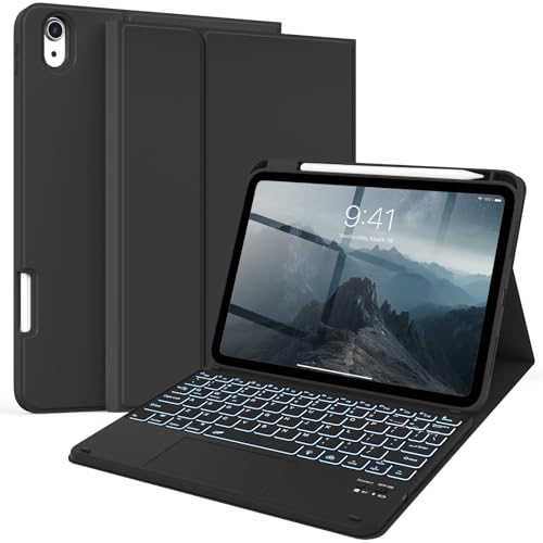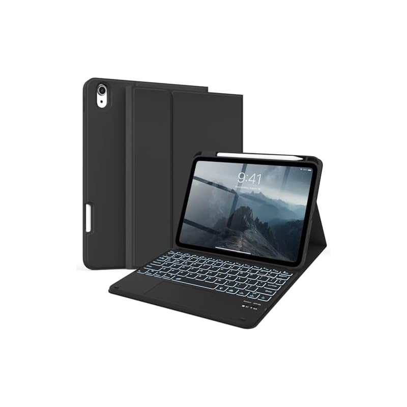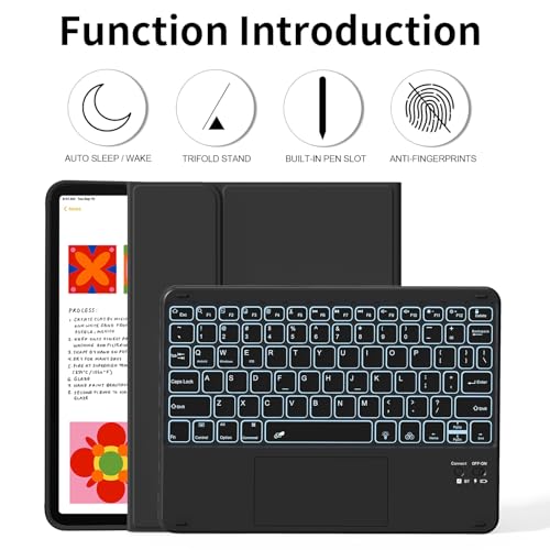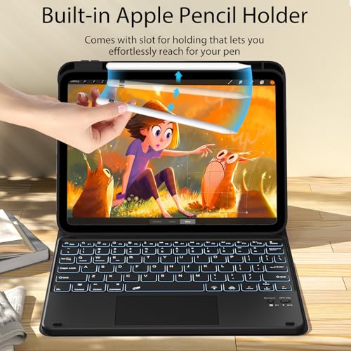 Especificaciones: kenke Funda para iPad de 11/10ª generación con teclado de 11/10.9 pulgadas 2025 A16/2022, Bluetooth inalámbrico desmontable con soporte para lápiz lateral derecho, trackpad multitáctil retroiluminado