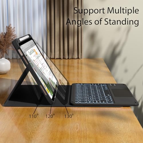 Batería de larga duración y soporte multiángulo: la batería de polímero de litio recargable de alta calidad de la industria hace que el teclado inalámbrico de esta funda para iPad de 11/10ª generación con teclado permanezca durante más de 3 días después de 2-3 horas de carga completa. La carcasa protectora se puede colocar en diferentes ángulos de inclinación para ajustar el ángulo de visión óptimo, muy flexible y fácil de usar.