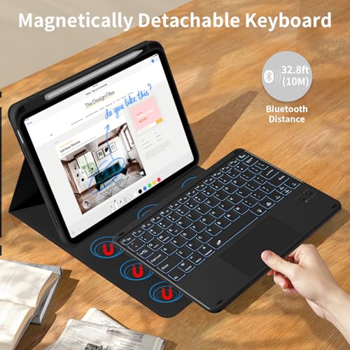 kenke Funda para iPad de 11/10ª generación con teclado de 11/10.9 pulgadas 2025 A16/2022, Bluetooth inalámbrico desmontable con soporte para lápiz lateral derecho, trackpad multitáctil retroiluminado