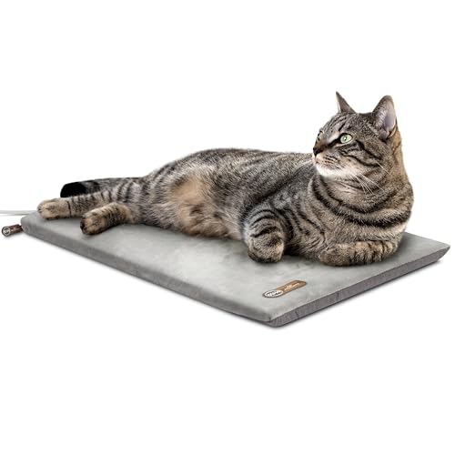 Lavable a máquina: la almohadilla térmica para gatos cuenta con un calentador de cama para mascotas K&H extraíble de 5.5 x 20 pulgadas y una funda lavable extraíble para un fácil cuidado