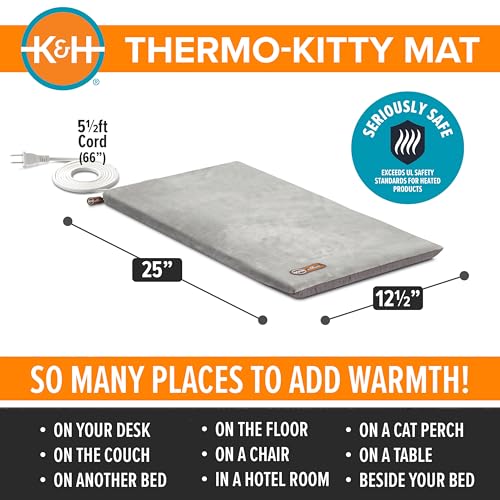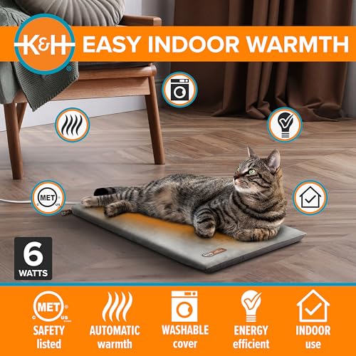 K&H Pet Products Almohadilla térmica para cama de gato para gatos de interior, tapete térmico para gatitos, almohadilla térmica cálida para mascotas en el interior, lavable a máquina, calentador