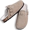 KIDMI Zuecos de gamuza forrados de piel para mujer, con plantilla de corcho, zapatos de patata de invierno